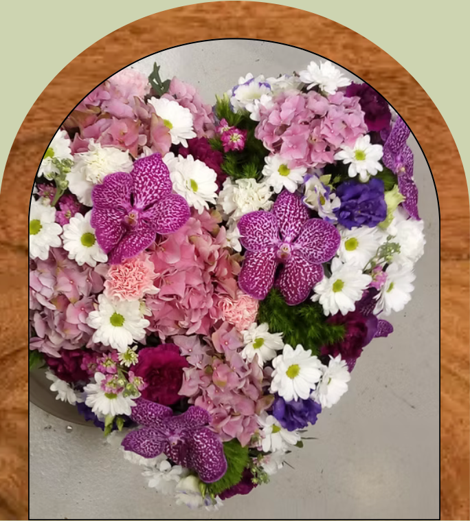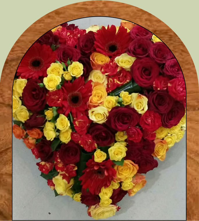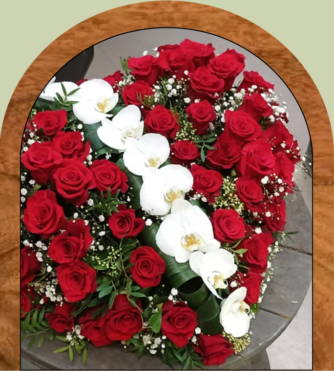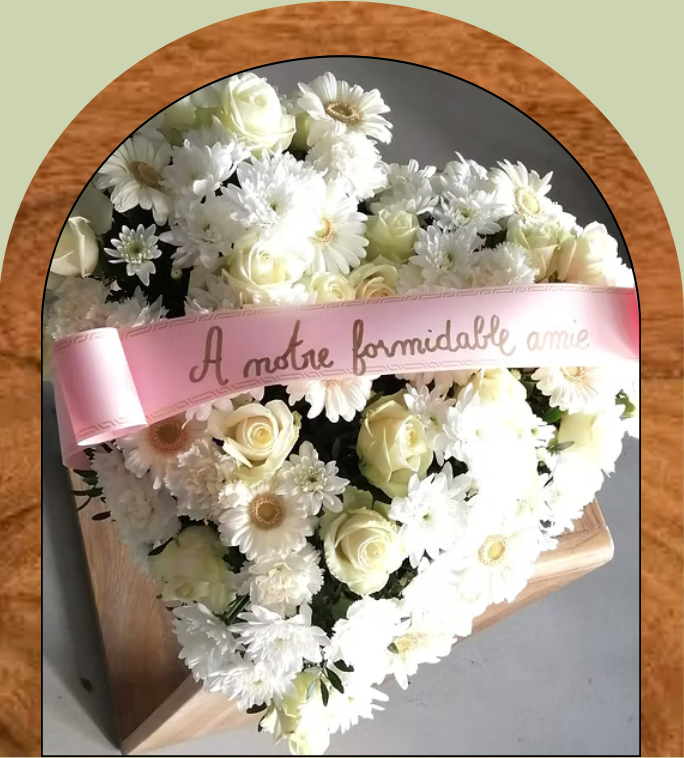 Nous réalisons sur commande des couronnes, coussins, gerbes à la main ou piquées, devants de tombe, croix ou encore cœurs fleuris, adaptés aux souhaits des familles et à l’esprit de la cérémonie.