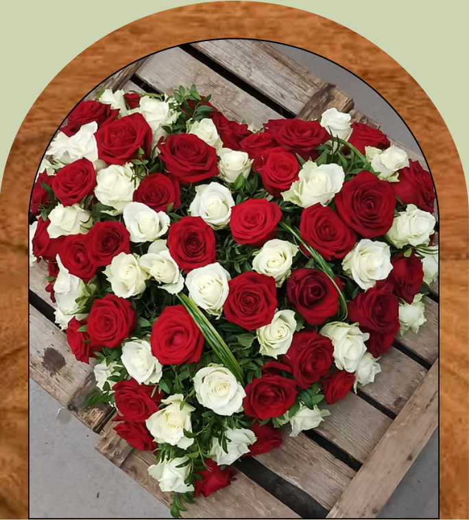 Coeur funéraire rouge et blanc